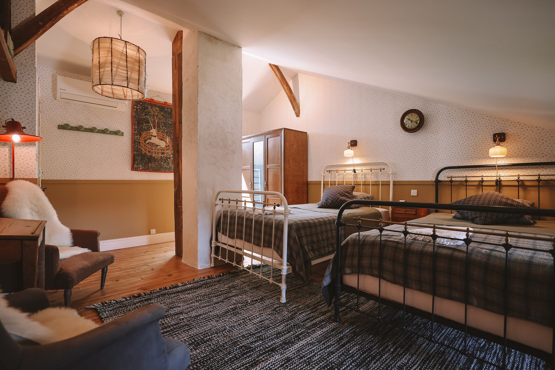 5 chambres répartis sur les 3 niveaux de la maison sont disponibles. Chacune proposant une configuration différente pour pouvoir s’adapter au plus grand nombre. Un paquet de brocante, troc, vide grenier, vide maison et autres … auront été nécessaire pour créer la décoration unique de chaque pièce.